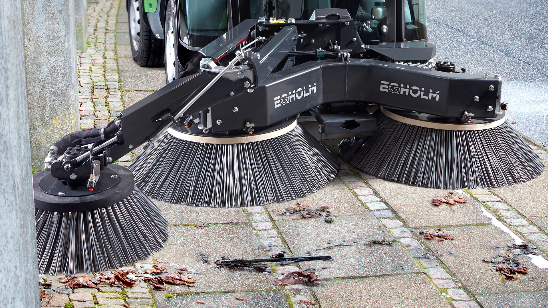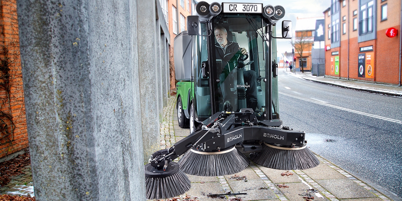 Egholm har udviklet en 3. sidekost til feje-/sugeanlægget på City Ranger 3070.