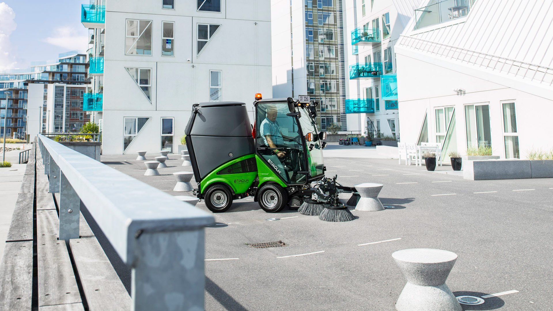 Professionel og utrolig manøvredygtig - også i snævre passager - er ideel til fejning af parkeringshuse pga. dens lave totalhøjde.